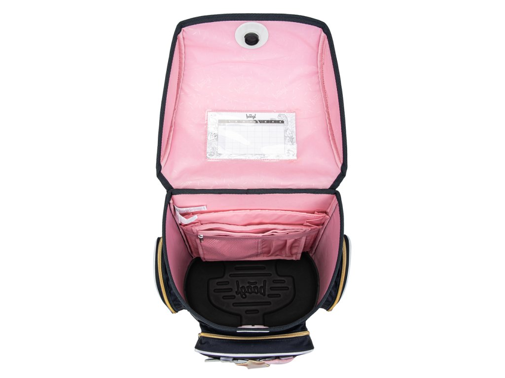 • Ergonomická školní aktovka s anatomicky tvarovanými zády a pevným dnem, vhodná pro děti od 1. třídy ZŠ.