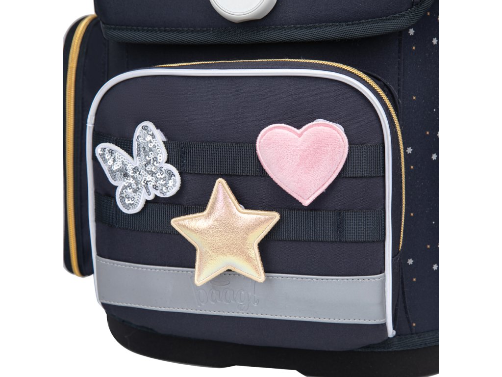 • Unikátní systém vyměnitelných odznáčků umožňuje přizpůsobit vzhled aktovky podle nálady a zájmů dítěte.