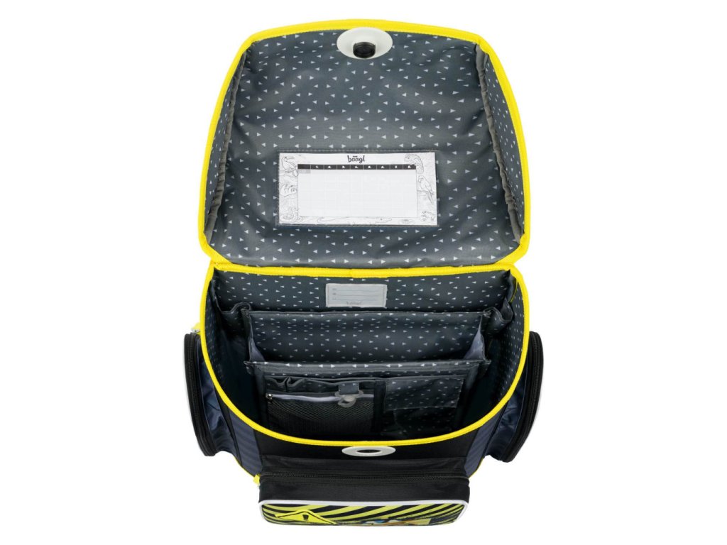 • Uvnitř aktovky je průhledná kapsa s rozvrhem a vnitřní organizér umožňující rovnoměrné rozložení hmotnosti.