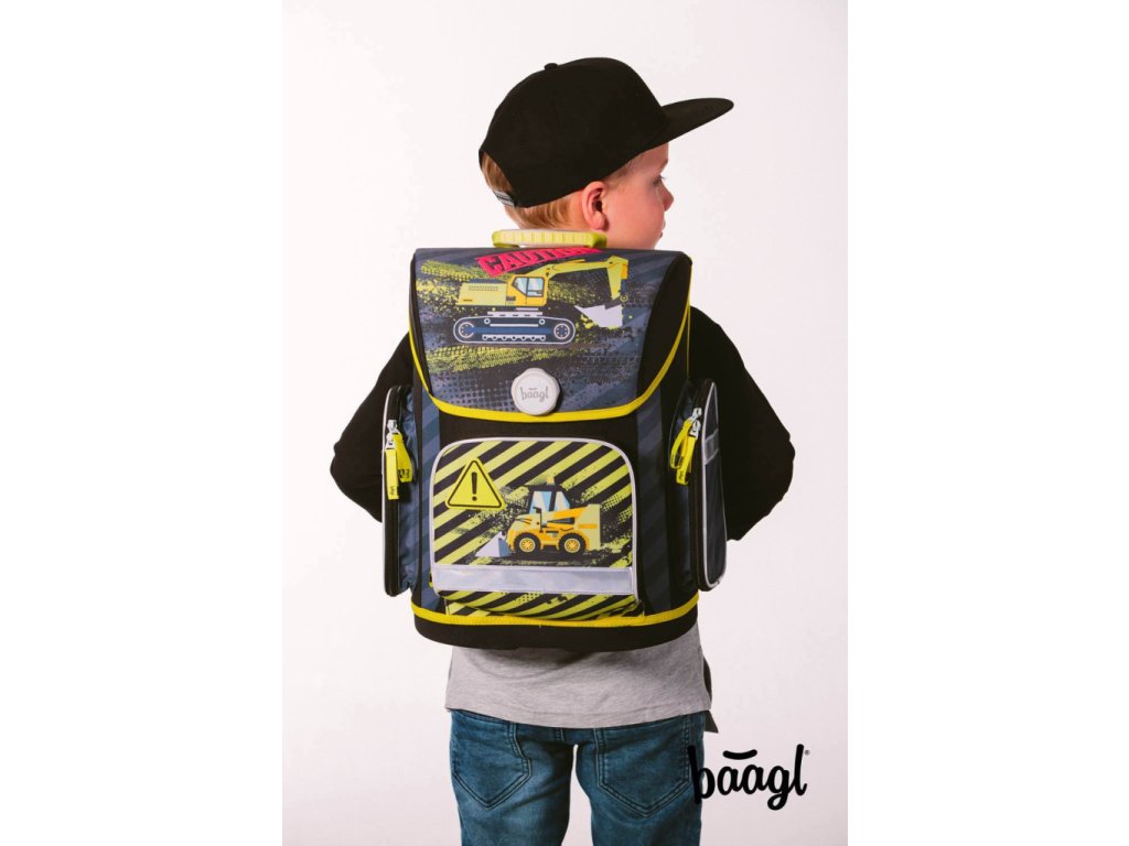 Školní aktovka ERGO s motivem bagru vhodná od 1. třídy ZŠ potěší každého malého stavitele.