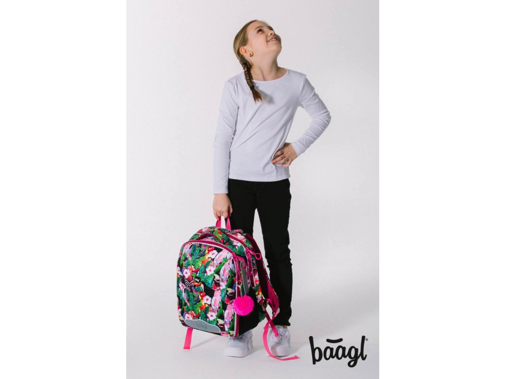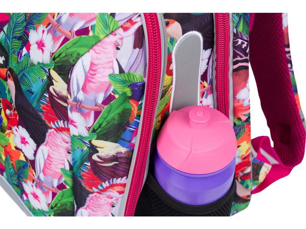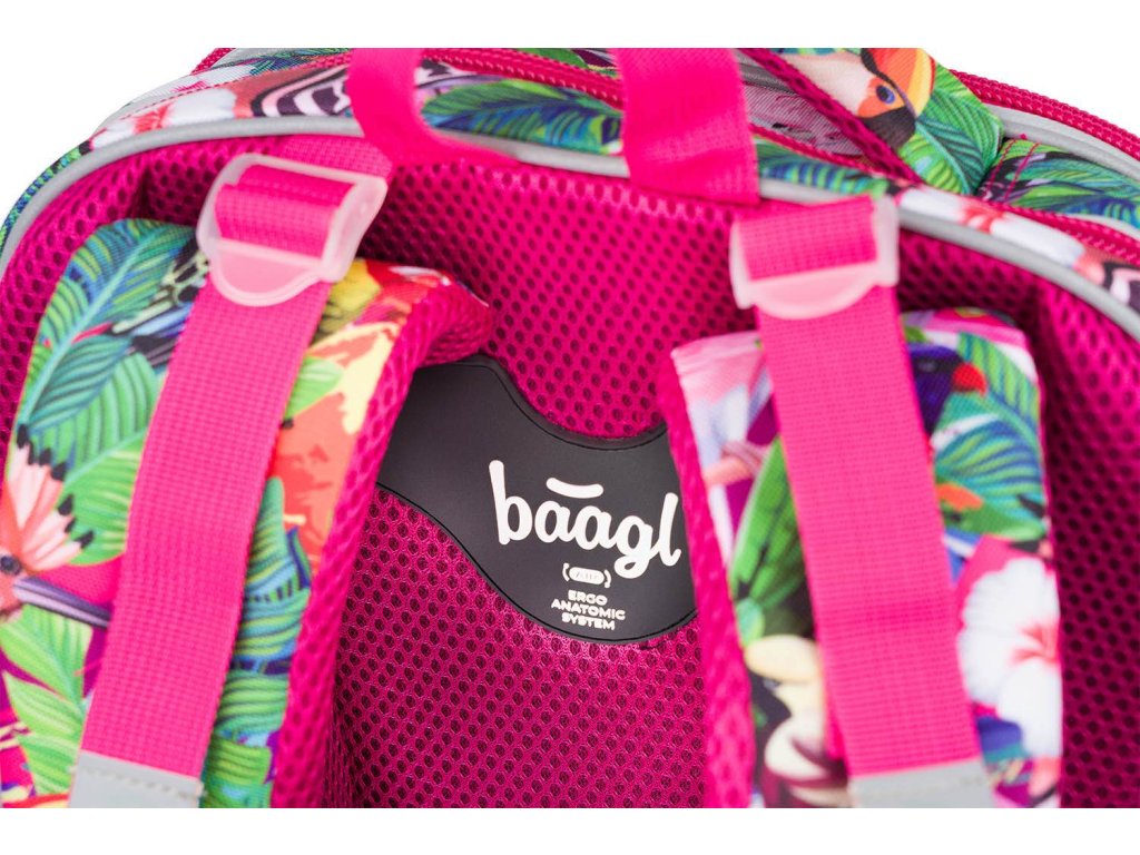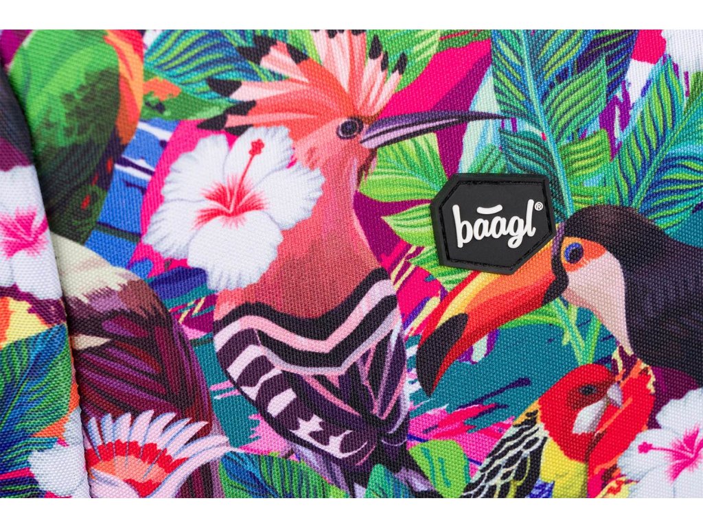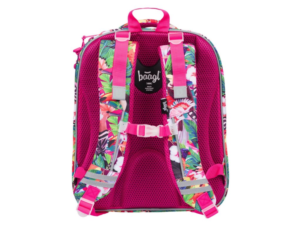 Dvoukomorová skořepinová aktovka Shelly Tukan s potiskem exotických papoušků, vhodná od 1. třídy ZŠ.