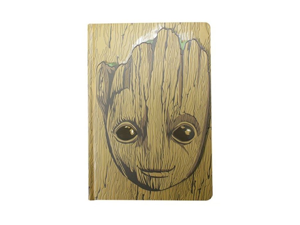 Atraktivní blok formátu A5 o 240 stranách s plastickým zobrazením Groota na přebalu.