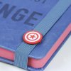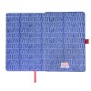Nelinkovaný blok ve formátu A5 s lepenou vazbou, tvrdými deskami, gumičkou na zavírání a záložkou.