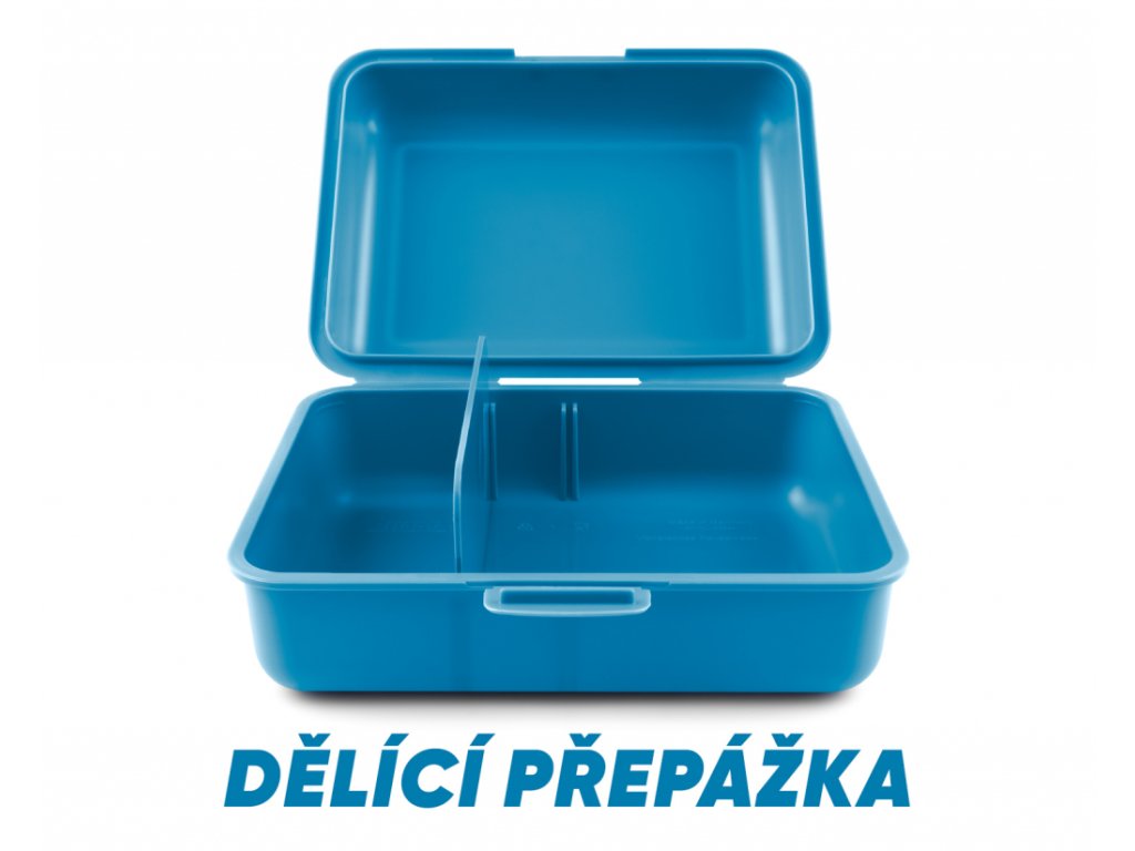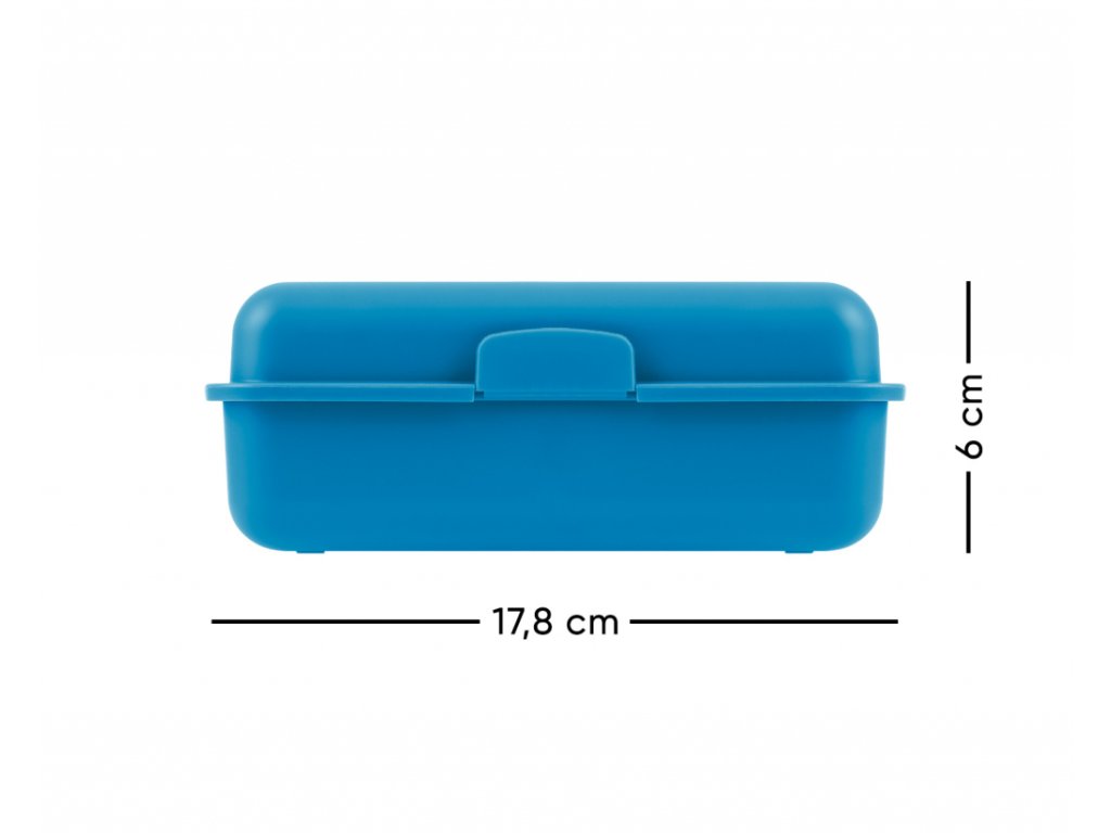 • Plastový box na svačinu v modré barvě.