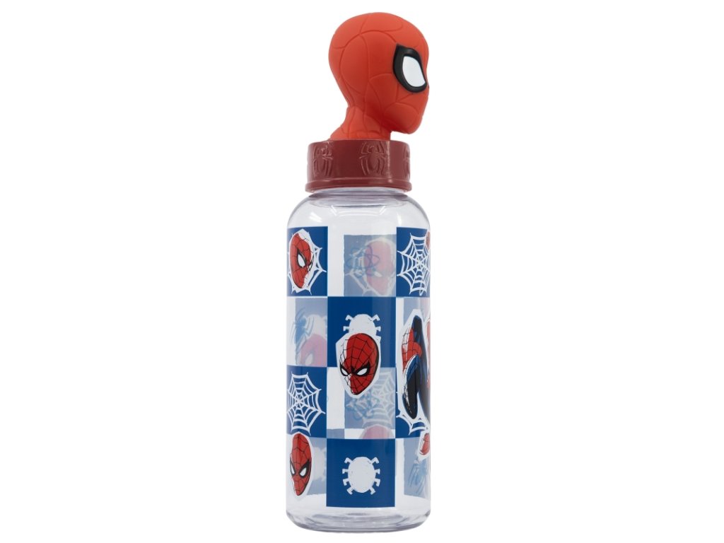 Lehká cestovní láhev z tvrzeného plastu s bezpečnostním uzávěrem a praktickým poutkem s motivem oblíbeného pavoučího superhrdiny vydavatelství a studia MARVEL.