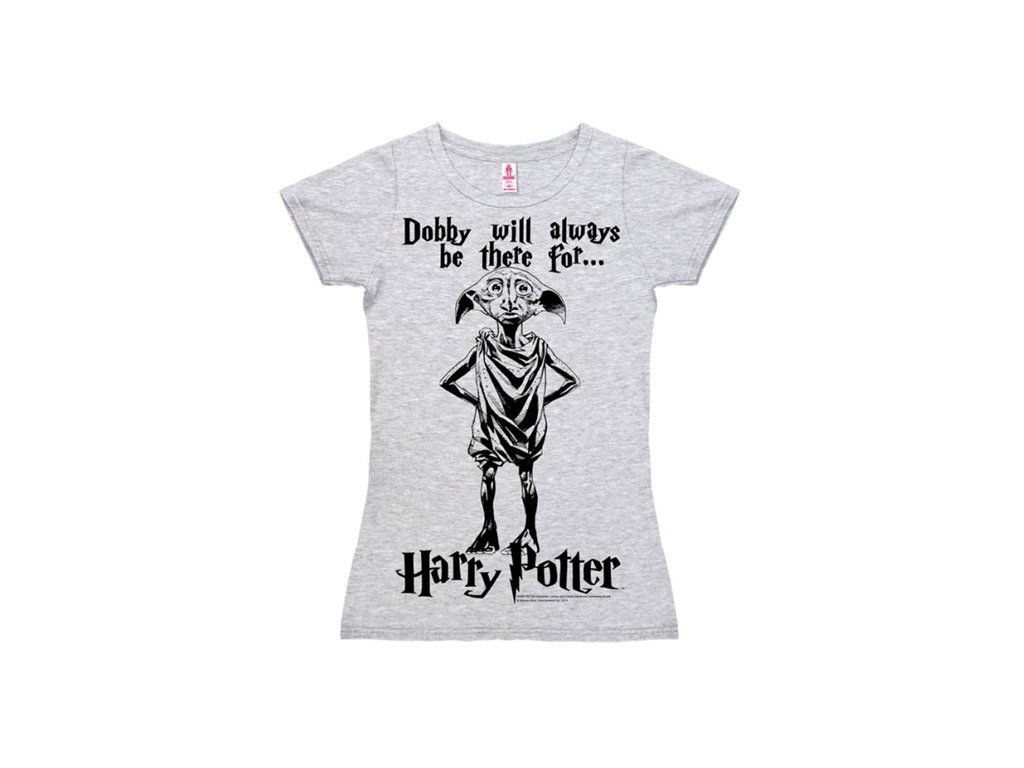 Šedé dámské tričko s obrázkem Dobbyho a nápisem "Dobby will always be there for... Harry Potter".