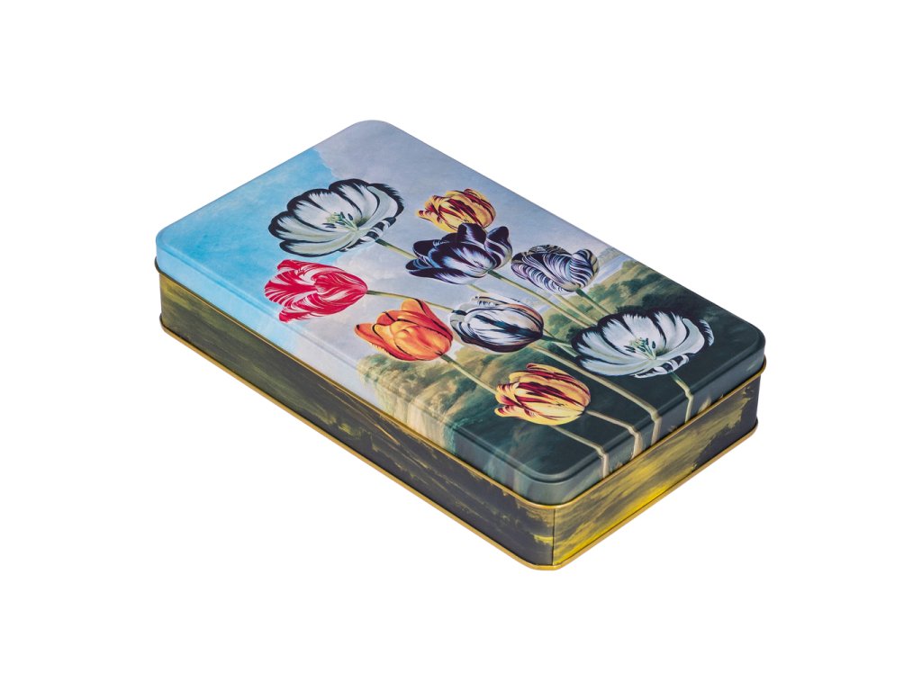 Stylová plechová dóza z s vyobrazením tulipánů má všestranné praktické využití. Můžete do ní uložit sladkosti, cukroví či jiné potraviny, nejrůznější poklady a další domácí drobnosti. Dóza je vyrobena ze 100% oceli s cínovou vrstvou.