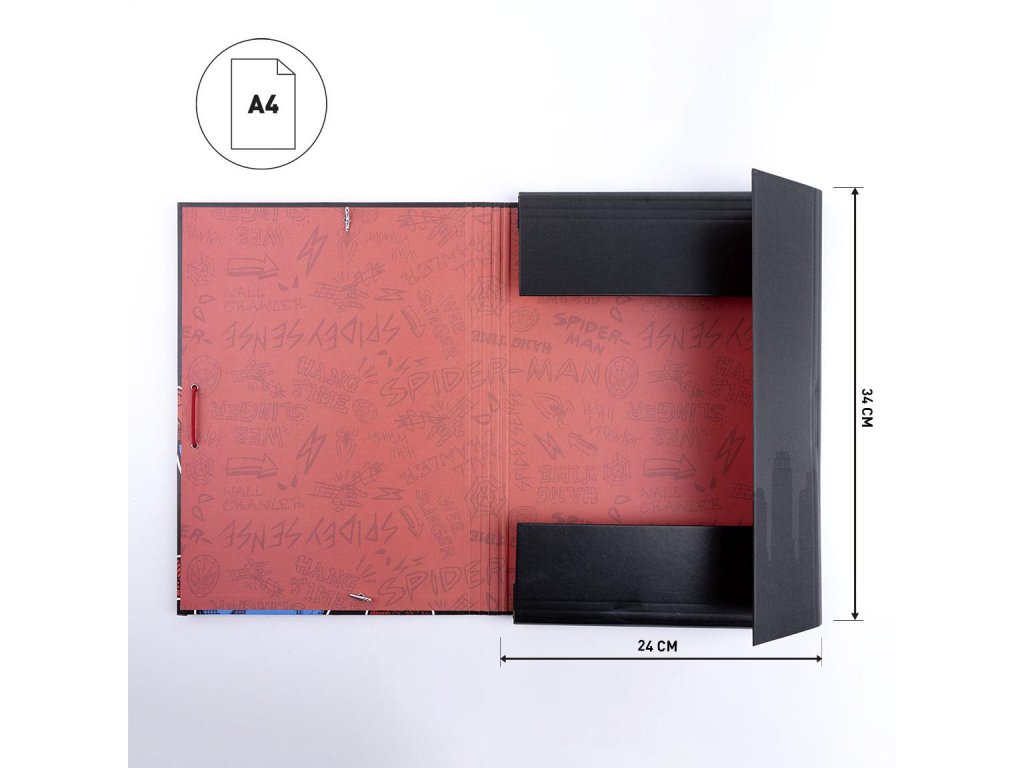 Desky s gumičkou nejen na školní sešity s motivem oblíbeného superhrdiny Spidermana z dílny vydavatelství a studia Marvel.