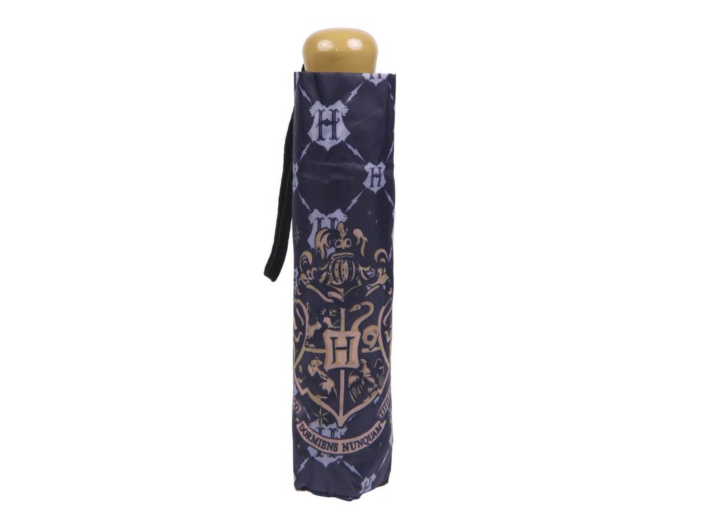 Modrý skládací deštník s motivem erbu Školy čar a kouzel v Bradavicích ze slavné knižní a filmové ságy HARRY POTTER.