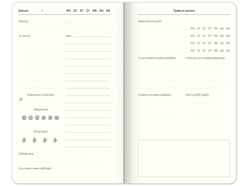 Nedatovaný plánovač Note to self, 5 minut denně, 13 × 21 cm