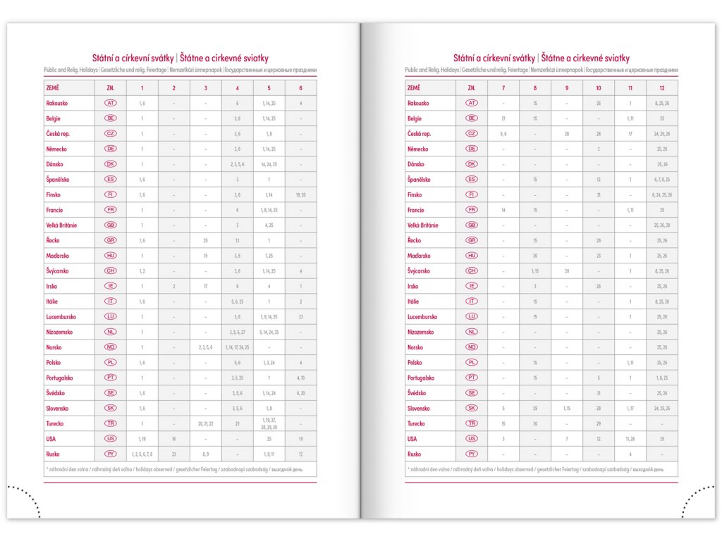 • svátky České a Slovenské republiky a mezinárodní svátky