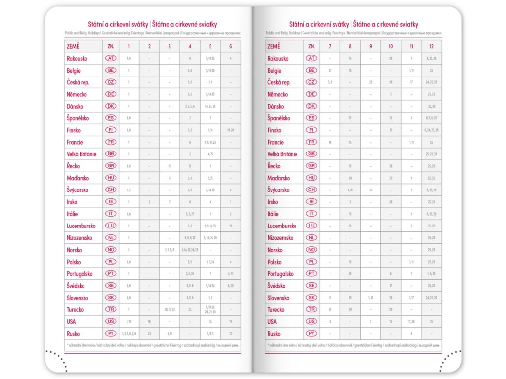 • svátky České a Slovenské republiky a mezinárodní svátky