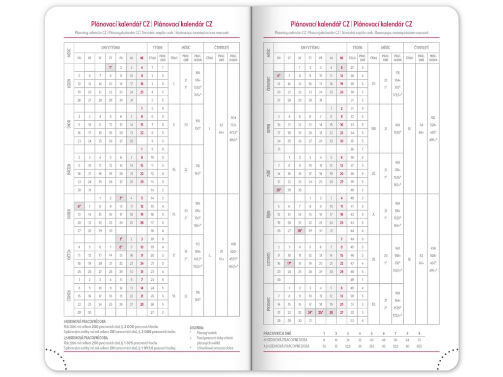 • pracovní plánovací kalendář