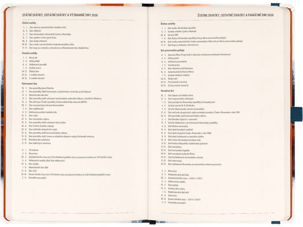 DVA SVĚTY. JEDEN PRODUKT. Hledáte dokonalou kombinaci plánování a zapisování poznámek? PLANBOOK vám přináší to nejlepší z obou světů! Perfektní spojení diáře a zápisníku – první polovina obsahuje čtrnáctidenní horizontální kalendárium s českými a slovenskými svátky, zatímco druhá polovina nabízí linkované stránky pro vaše poznámky. Praktický, stylový a dokonale přizpůsobený vašim potřebám – ať už si plánujete den, nebo přemýšlíte nad dalším velkým projektem. PLANBOOK je ideální pro všechny, kteří milují organizaci a kreativitu na jednom místě.
