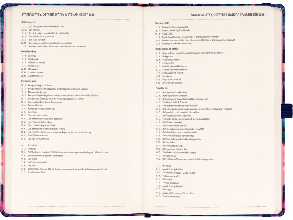 DVA SVĚTY. JEDEN PRODUKT. Hledáte dokonalou kombinaci plánování a zapisování poznámek? PLANBOOK vám přináší to nejlepší z obou světů! Perfektní spojení diáře a zápisníku – první polovina obsahuje čtrnáctidenní horizontální kalendárium s českými a slovenskými svátky, zatímco druhá polovina nabízí linkované stránky pro vaše poznámky. Praktický, stylový a dokonale přizpůsobený vašim potřebám – ať už si plánujete den, nebo přemýšlíte nad dalším velkým projektem. PLANBOOK je ideální pro všechny, kteří milují organizaci a kreativitu na jednom místě.