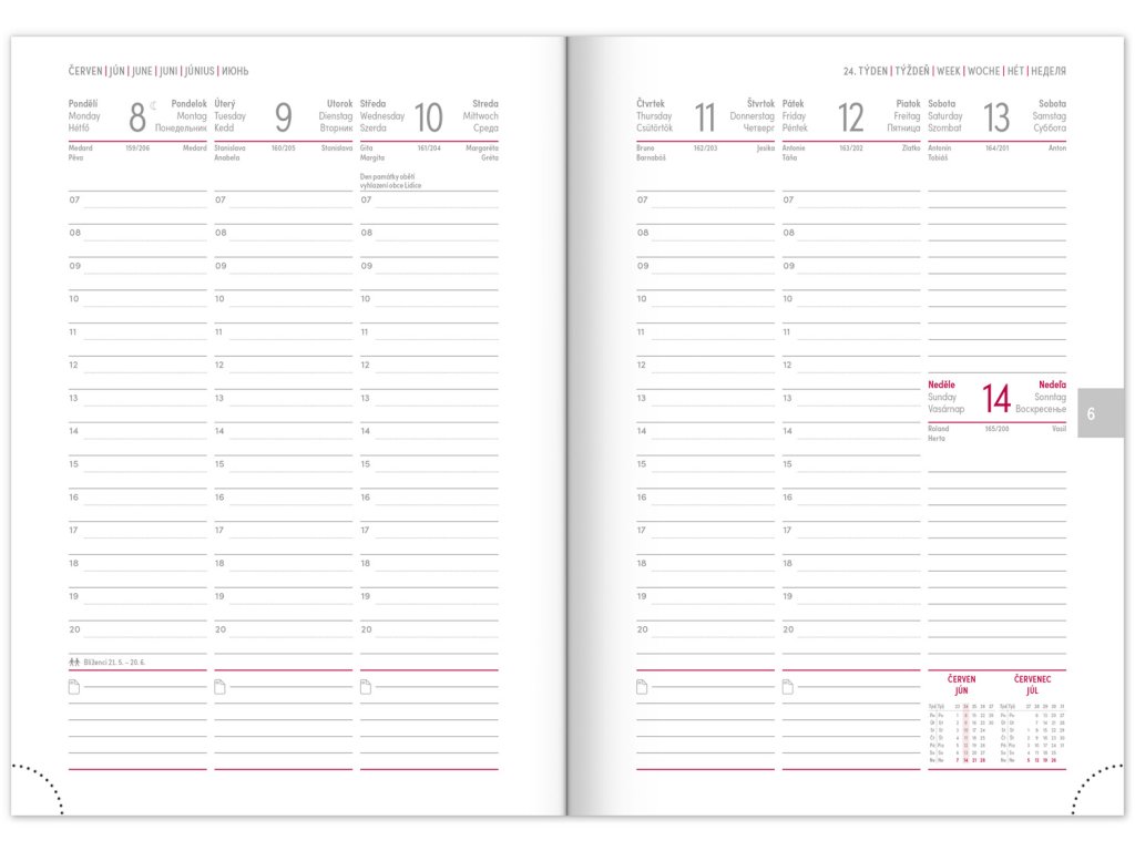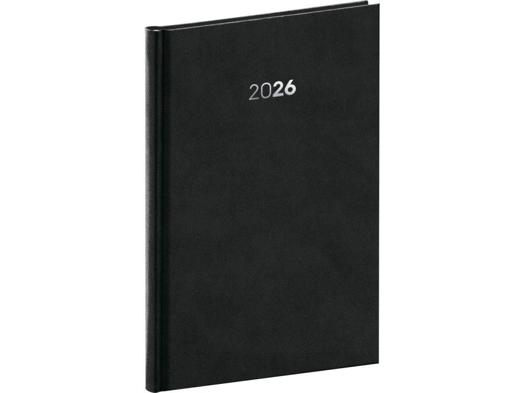 Plánovací týdenní diář Balakon 2026 v černém provedení, doplněný o stříbrný letopočet. Povrch diáře si získal oblibu díky kvalitnímu svrchnímu materiálu, který je extrémně odolný vůči vnějšímu poškození. Týdenní rozvrh s česko-slovenským kalendáriem a doplňkovou angličtinou, němčinou, maďarštinou a ruštinou.