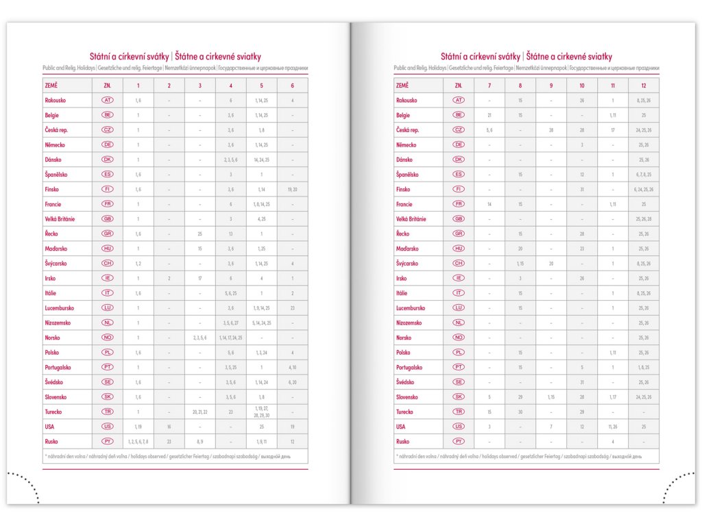 • svátky České a Slovenské republiky a mezinárodní svátky