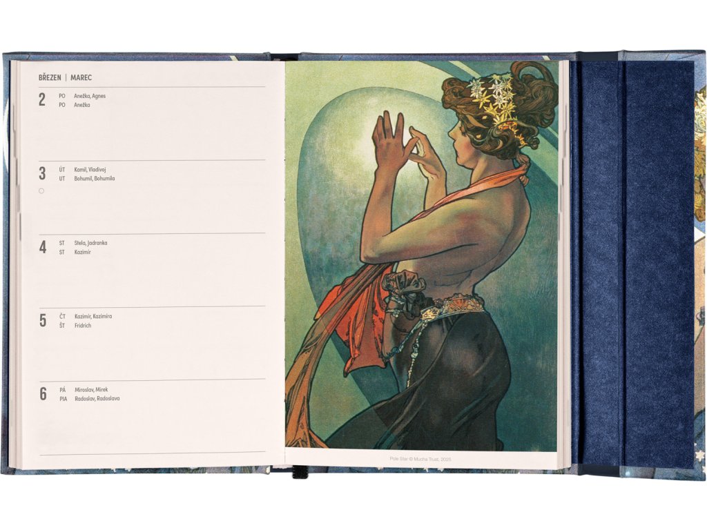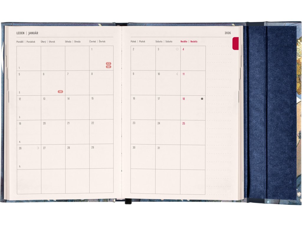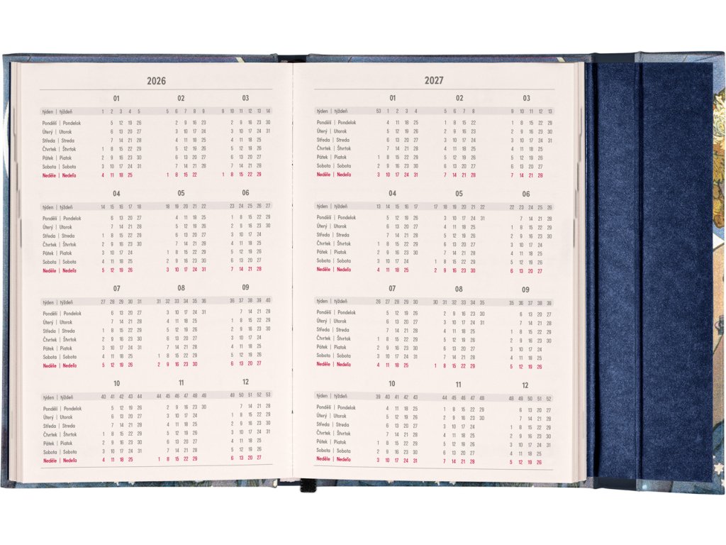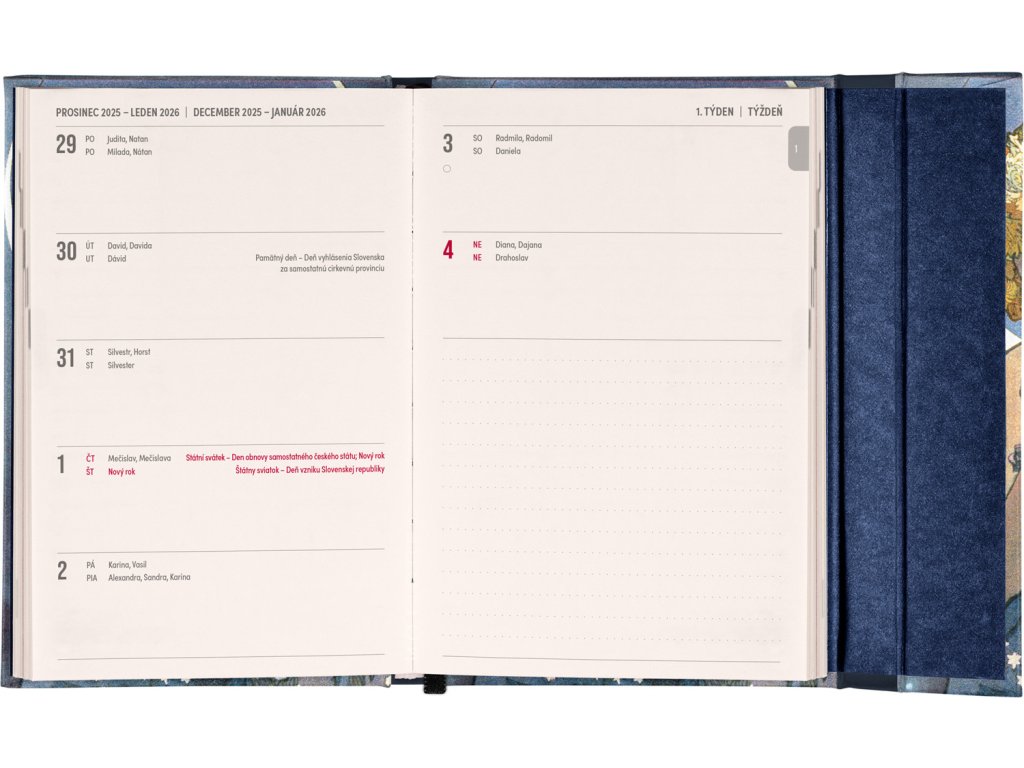 NOTIQUE Týdenní magnetický diář Alfons Mucha 2026, 11 x 16 cm