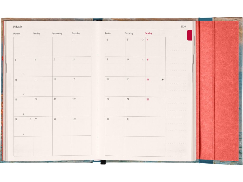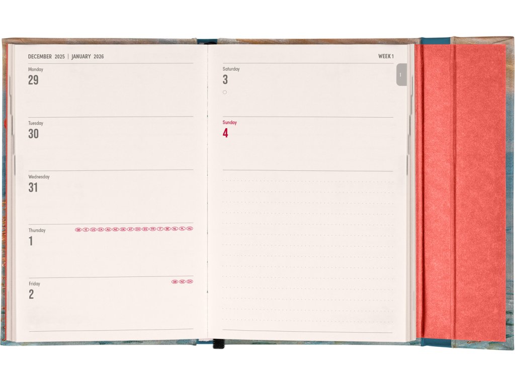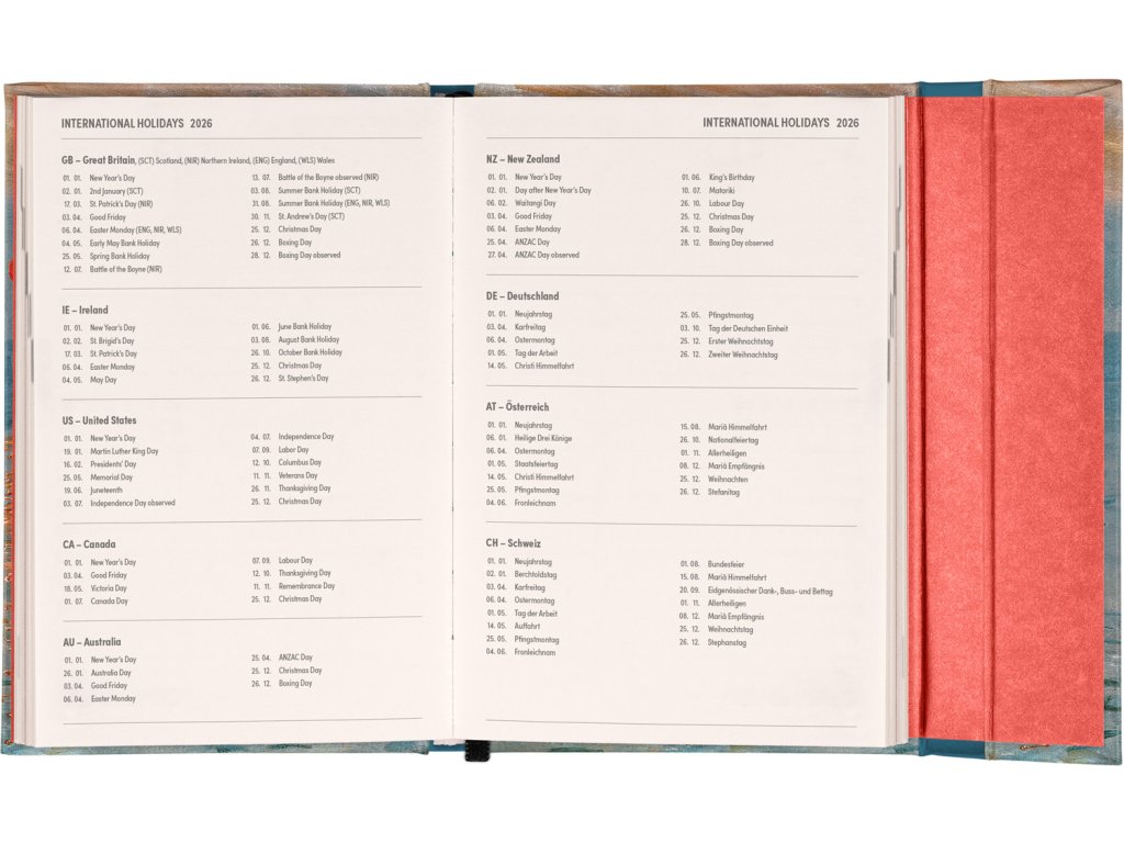 Týdenní diář v anglickém jazyce s mezinárodními svátky a praktickým magnetickým uzavíráním je ideální volbou pro ty, kteří chtějí mít své plány přehledně pod kontrolou. Nabízí horizontální rozložení ve verzi týden na dvou stranách s prostorem pro poznámky. Součástí jsou praktické měsíční přehledy, ideální pro plánování dovolených či prázdnin.