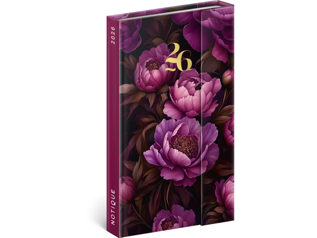 NOTIQUE Týdenní magnetický diář Fialové květy 2026, 13 x 21 cm
