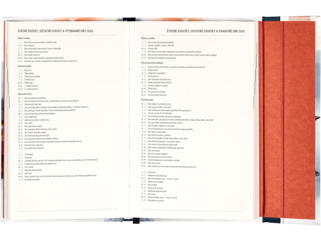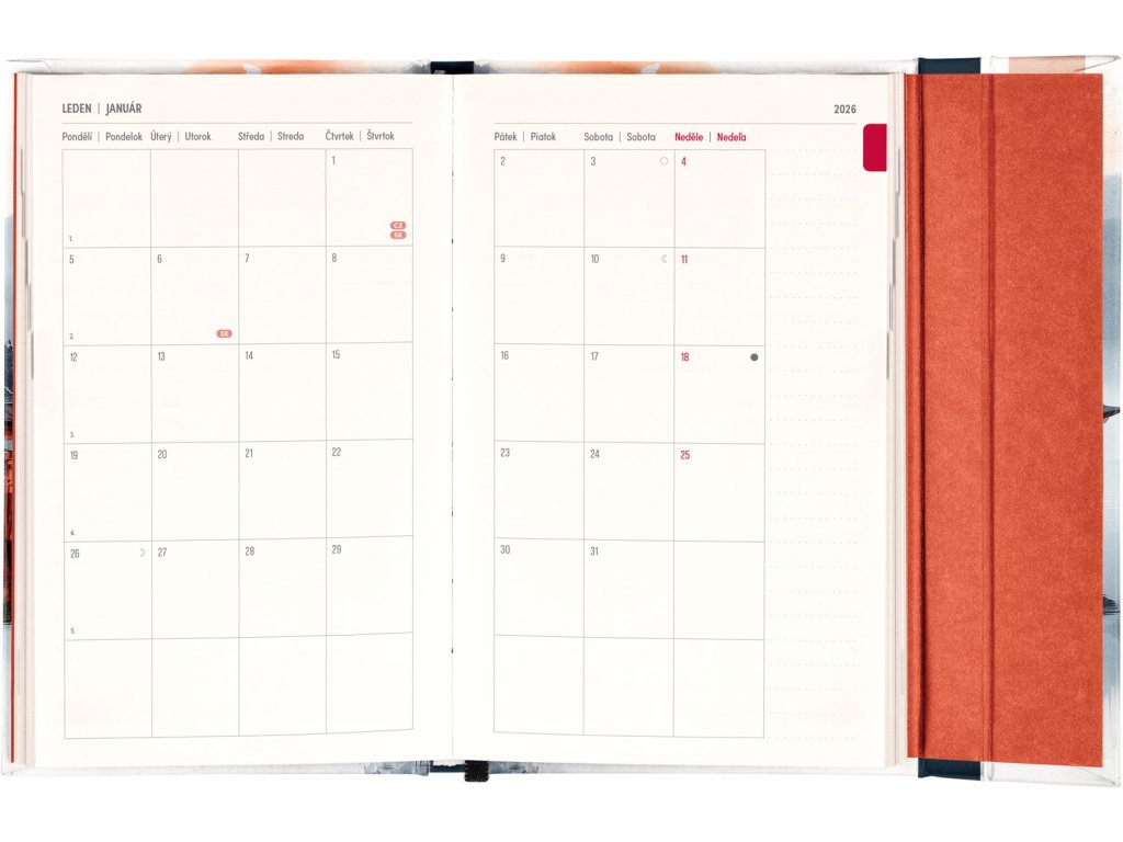 Týdenní diář s praktickým magnetickým uzavíráním je ideální volbou pro ty, kteří chtějí mít své plány přehledně pod kontrolou. Nabízí sloupcové rozvržení jednotlivých týdnů s dostatkem prostoru pro každodenní poznámky. Součástí jsou praktické měsíční přehledy, ideální pro plánování dovolených či prázdnin, a také seznam českých a slovenských svátků a jmenin.