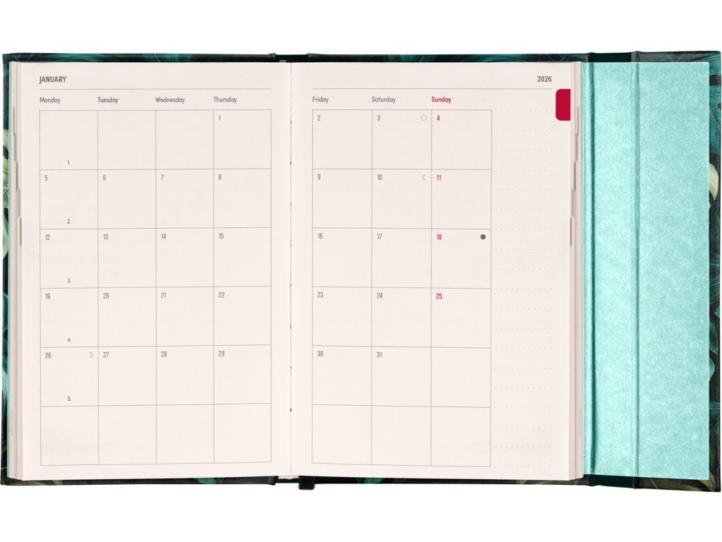 NOTIQUE Týdenní magnetický diář Monstera 2026, 11 x 16 cm