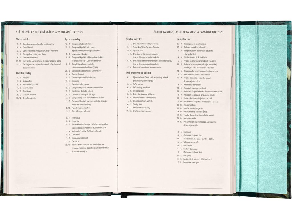 Týdenní diář s praktickým magnetickým uzavíráním je ideální volbou pro ty, kteří chtějí mít své plány přehledně pod kontrolou. Horizontální rozložení s českým a slovenským kalendáriem ve verzi týden na dvou stranách s prostorem pro poznámky. Součástí jsou praktické měsíční přehledy, ideální pro plánování dovolených či prázdnin, a také seznam českých a slovenských svátků a jmenin.