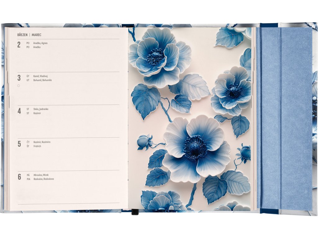 NOTIQUE Týdenní magnetický diář Porcelánový květ 2026, 11 x 16 cm