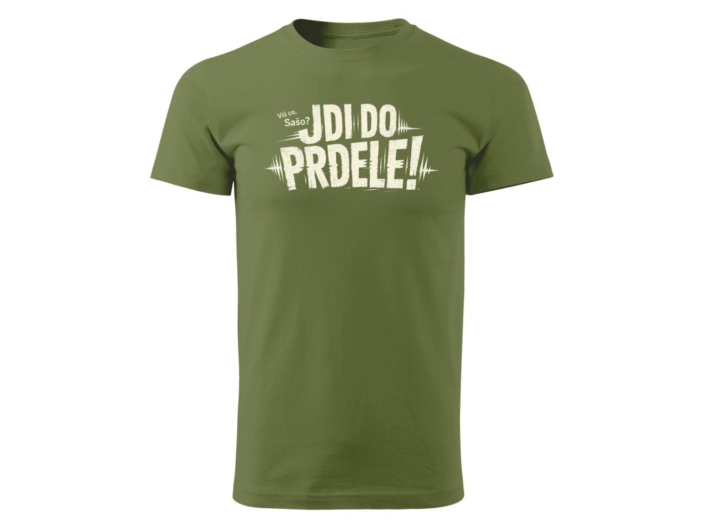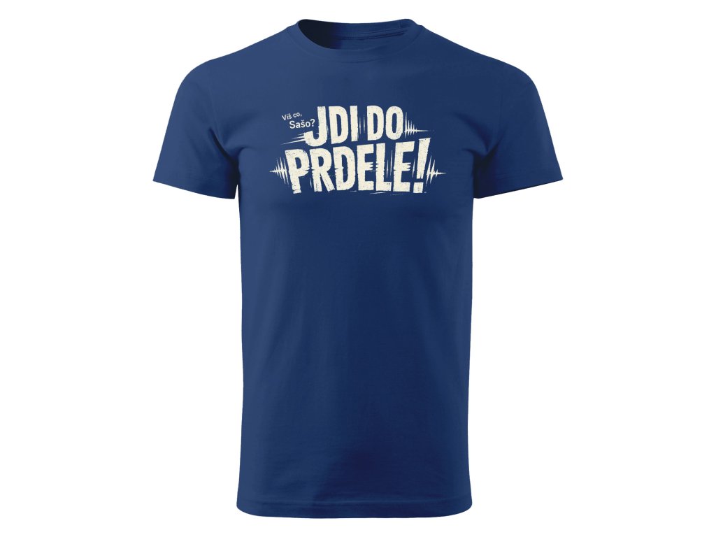 Vtipné bavlněné tričko s nekompromisní hláškou z oblíbeného českého filmu Pelíšky "Víš co, Sašo? Jdi do prdele".