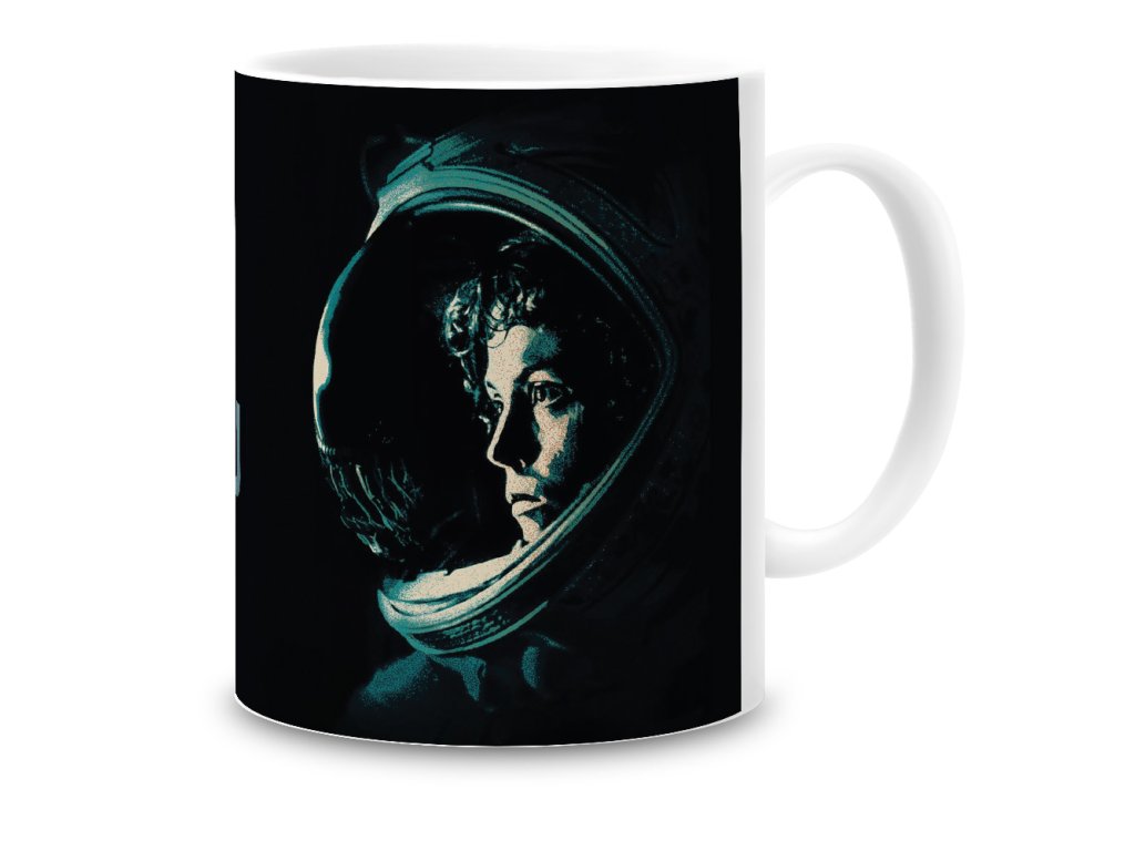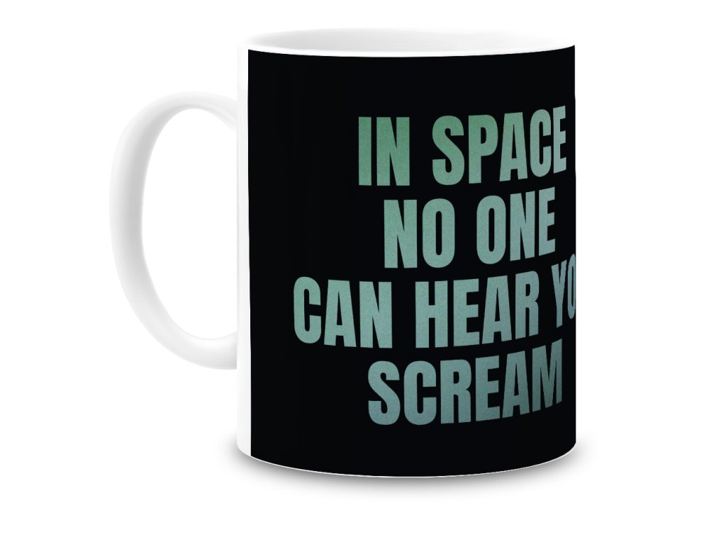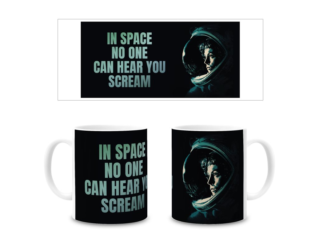 Keramický hrnek s motivem Ellen Ripley a výrazným ikonickým mottem "IN SPACE NO ONE CAN HEAR YOUR SCREAM" z kultovního filmu Vetřelec.