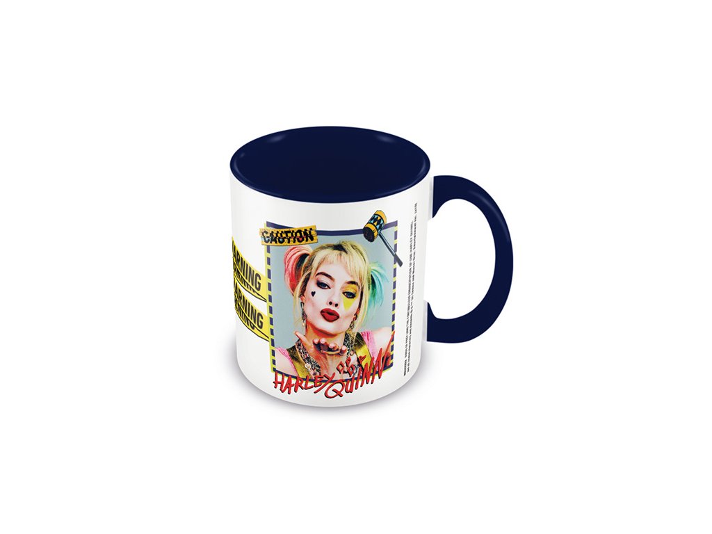 Modro-bílý keramický hrnek s výrazným varováním a nebezpečnou Harley Quinn a z nového filmu Birds of Prey. Objem: 330 ml