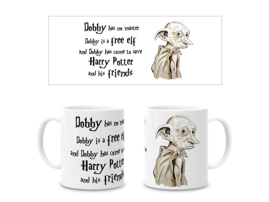 Keramický hrnek bílé barvy s motivem domácího skřítka Dobbyho ze slavné knižní a filmové ságy HARRY POTTER.