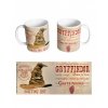 Bílý keramický hrnek s Moudrým kloboukem a jeho rozhodnutím, že majitel tohoto hrnku bude studovat na koleji Nebelvír Školy čar a kouzel v Bradavicích ze slavné knižní a filmové ságy HARRY POTTER.