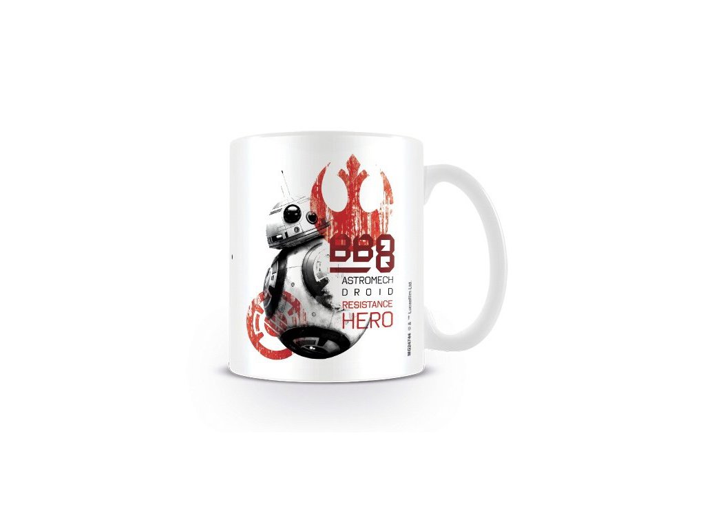 Keramický bílý hrnek s hrdinským robotem BB-8 a znakem Povstalců ze slavné sci-fi ságy.