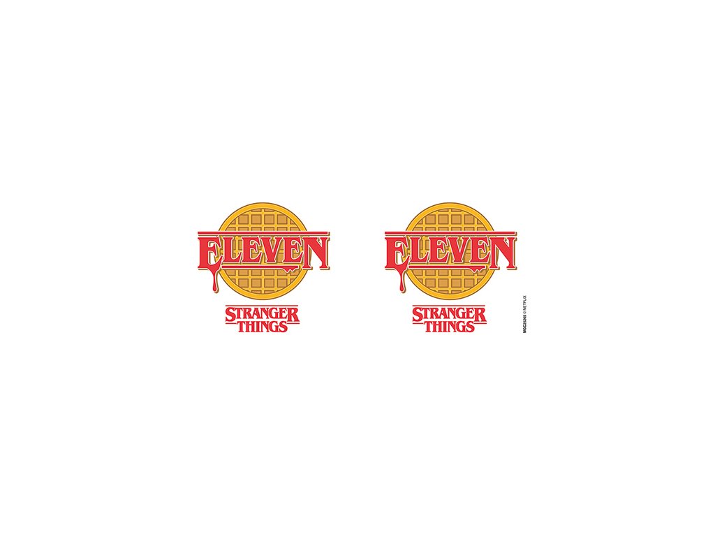 Červený keramický hrnek s bílým potiskem který přímo zve k nejoblíbenějšímu jídlu Eleven a tím jsou lívance/wafle značky Eggos.