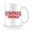 Bílý keramický hrnek s červeným logem seriálu Stranger Things.