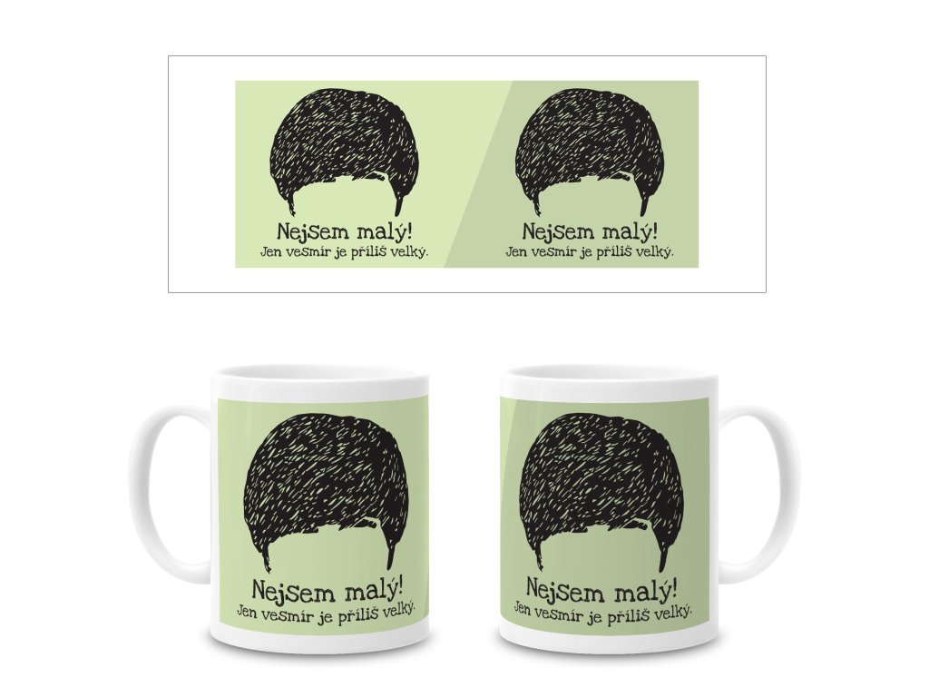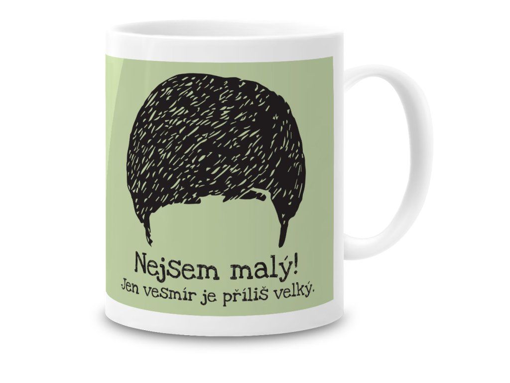 Bílý keramický hrnek nejen pro fanoušky seriálu The Big Bang Theory s nezaměnitelným motivem Howardovy siluety a nápisem: "Nejsem malý. Jen vesmír je příliš velký."