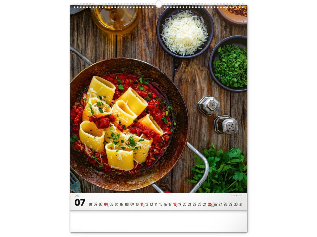 Velkoformátový kalendář z kolekce Platinum Collection obsahuje fotografie luxusních pokrmů, které budete chtít ochutnat. Šťavnaté steaky, křidýlka i stehýnka oživí interiér v každé kuchyni či jídelně. Kalendář zahrnuje jednoduché kalendárium.