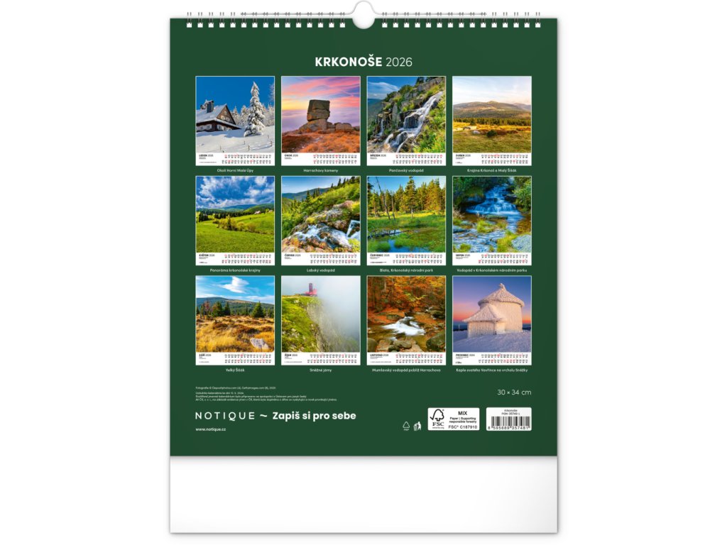 NOTIQUE Nástěnný kalendář Krkonoše 2026, 30 x 34 cm