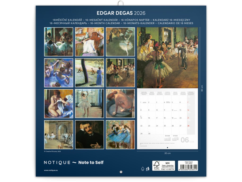 NOTIQUE Poznámkový kalendář Edgar Degas 2026, 30 x 30 cm