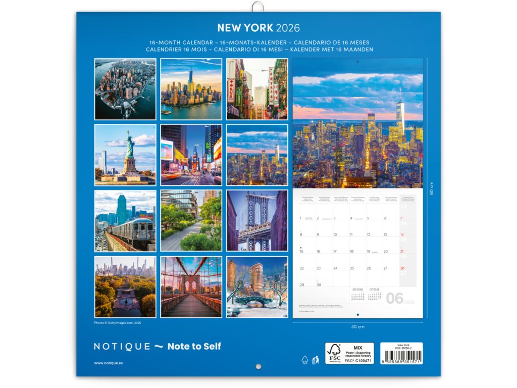 NOTIQUE Poznámkový kalendář New York 2026, 30 x 30 cm