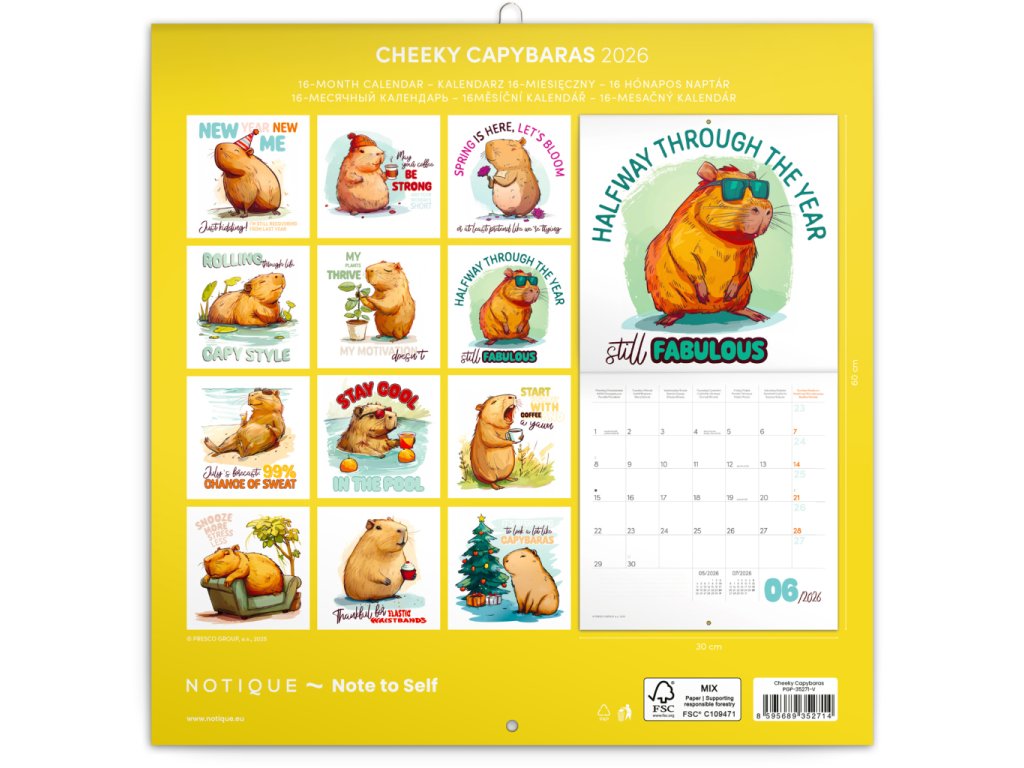 NOTIQUE Poznámkový kalendář Rozverné kapybary 2026, 30 x 30 cm