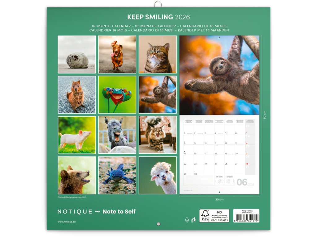 NOTIQUE Poznámkový kalendář Úsměv, prosím 2026, 30 x 30 cm