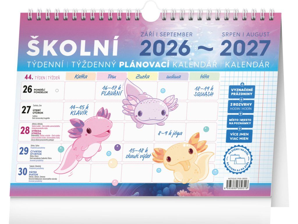 My všichni školou povinní víme, jak důležité je najít balanc mezi povinnostmi a zábavou. Čas si může naplánovat až pětičlenná rodina do sloupečků na celý týden. Obsahuje české a slovenské kalendárium od srpna 2025 do srpna 2026, rozvrhy hodin a praktický háček k zavěšení.