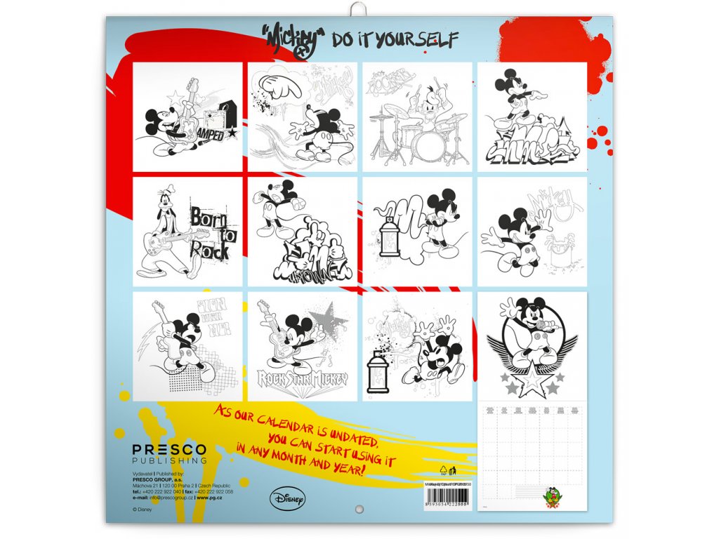 Poznámkový kalendář Mickey Mouse – DIY: omalovánkový kalendář, 30 x 30 cm