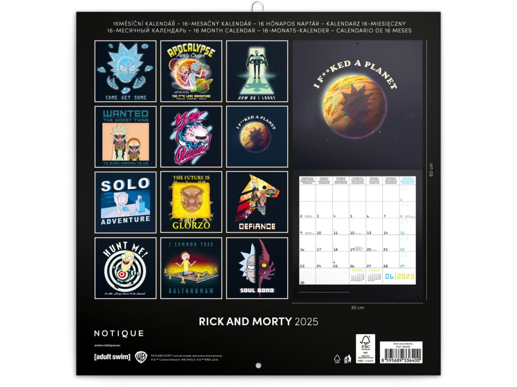 Poznámkový kalendář Rick a Morty 2025, 30 × 30 cm