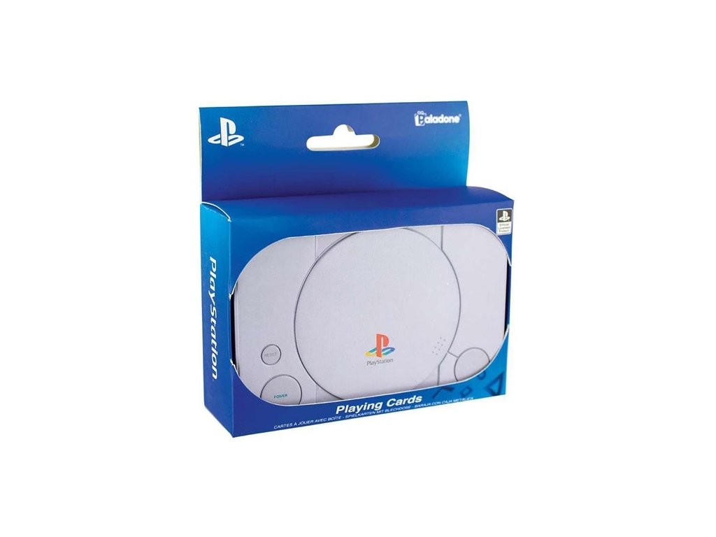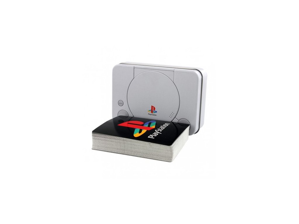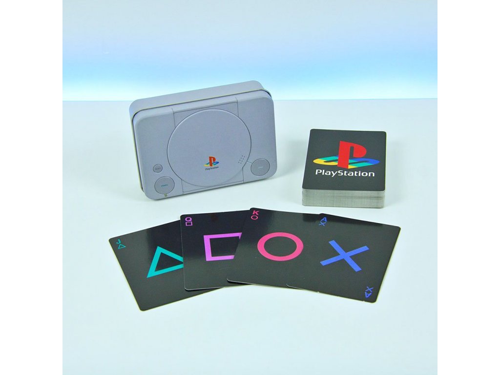 Oficiální hrací karty a doplňkové zboží z katalogu produktů s logem, fotografiemi a grafikou brandu Playstation.