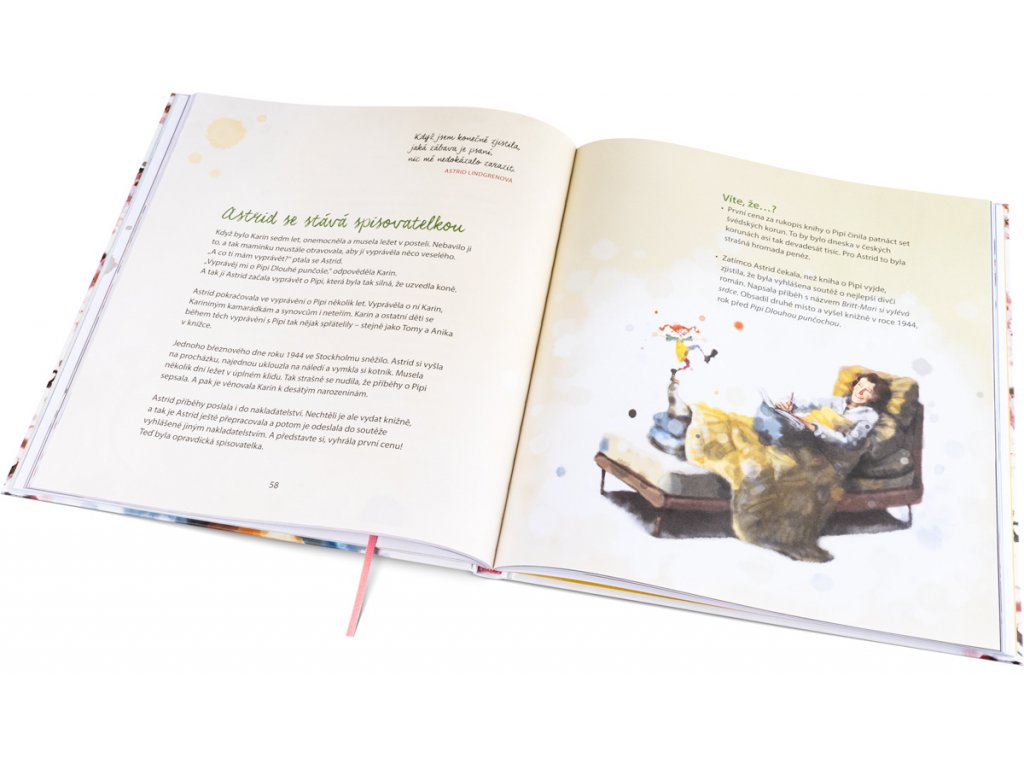 Není divu – vždyť spoustu toho, o čem Astrid Lindgrenová psala, také sama zažila. Nosila v sobě moc a moc příběhů a díky této překrásné knížce může poodhalit tajemství toho, odkud se vzala všechna ta úžasná dobrodružství dětí z Bullerbynu, Pipi Dlouhé punčochy, Karkulína ze střechy, loupežnické dcery Ronji a mnoha dalších hrdinů.