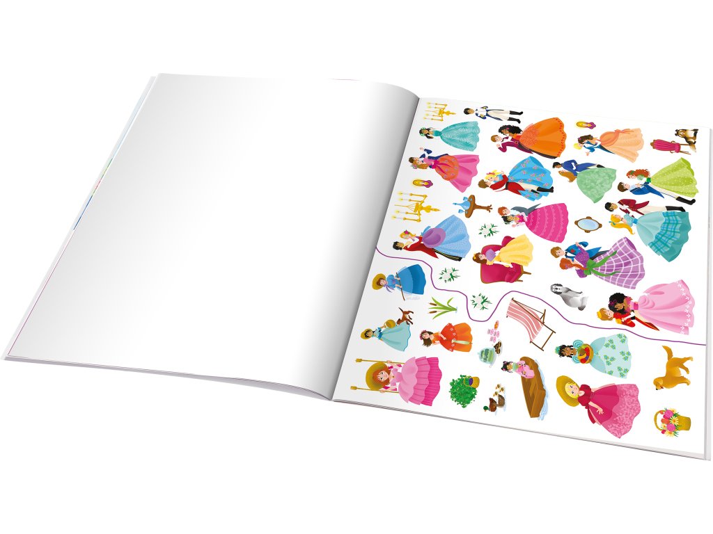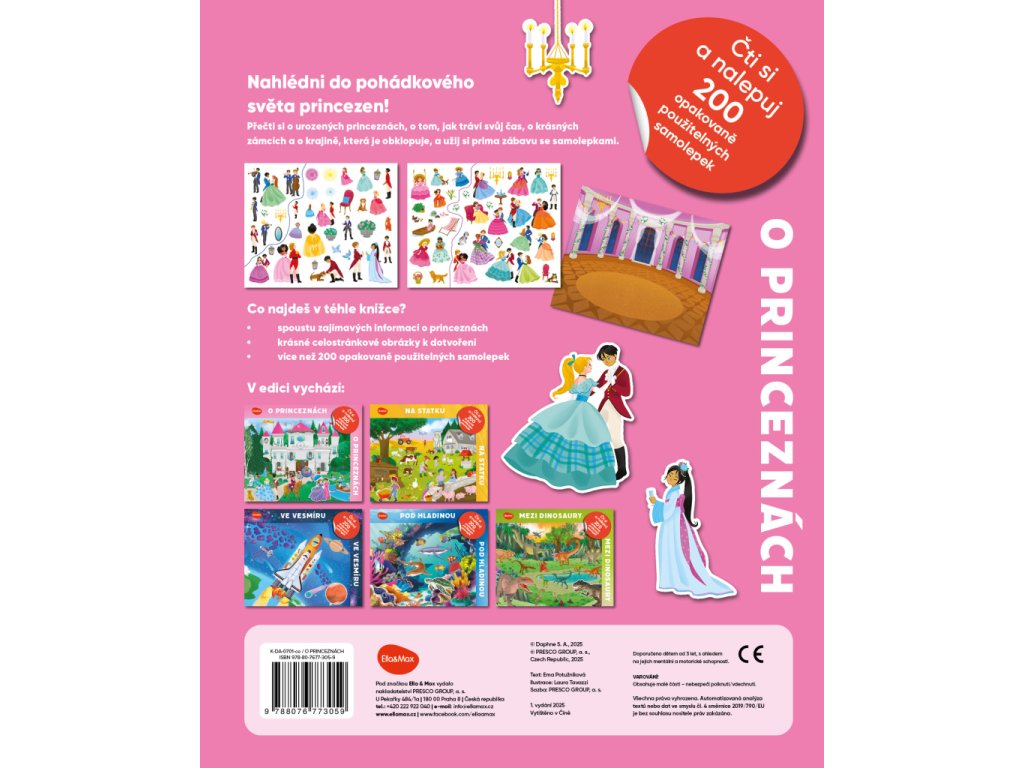 Užijte si spoustu zábavy s úžasnými adhezivními samolepkami, díky nimž stvoříte svůj vlastní pohádkový svět! V téhle knížce jich objevíte více než dvě stovky a můžete s jejich pomocí donekonečna dotvářet překrásné celostránkové obrázky, k nimž samolepky jednoduše přilnou. Vedle toho tu najdete také poutavý text plný zajímavých informací. Zavítáte do světa urozených princezen – navštívíte je v jejich zámeckých komnatách, projdete se s nimi romantickým parkem i okolní krajinou a přečtete si o tom, jak tráví svůj čas.