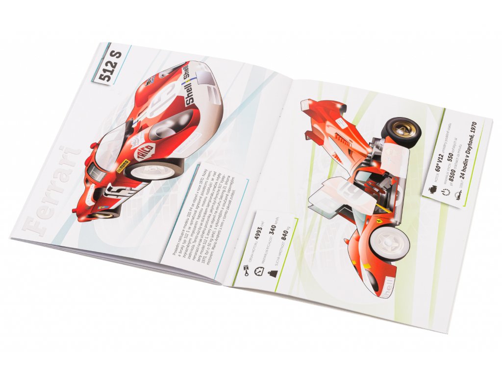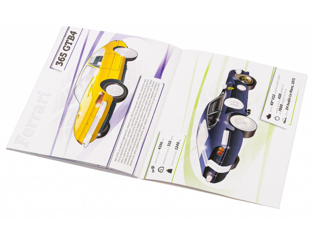 Dotvářej modely pomocí více než 100 samolepek a obdivuj kouzlo a sílu vozů Ferrari!